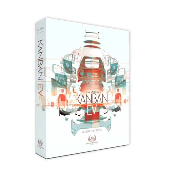 O Kanban EV (Veículos Elétricos) apresenta uma nova arte de Ian O'Toole, componentes de luxo, uma versão solo oficial, novos tiles, novos cartões e um novo livro de regras totalmente aprimorado.