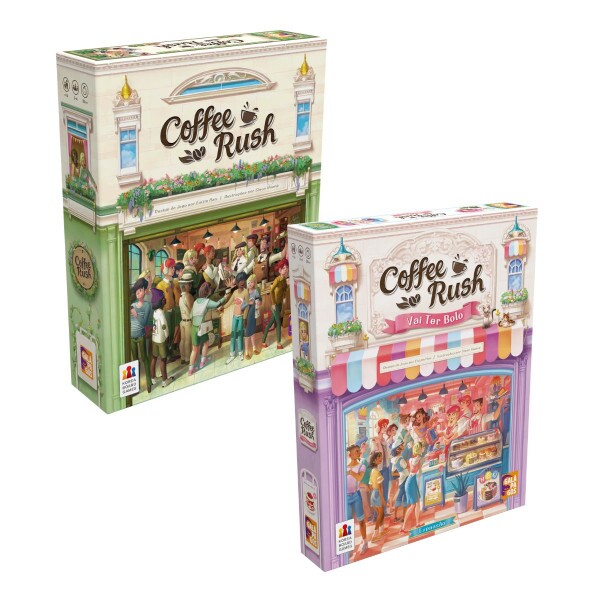 A expansão Coffee Rush: Vai Ter Bolo faz com que os jogadores cumpram novos pedidos com a ajuda de cartas de bolo. Ele adiciona novos tabuleiros de jogadores, novos cartões de pedidos, lindos bolos 3D e novas atualizações.