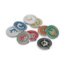 Conteúdo: 09 fichas de metal e uma caixa para armazenamento.