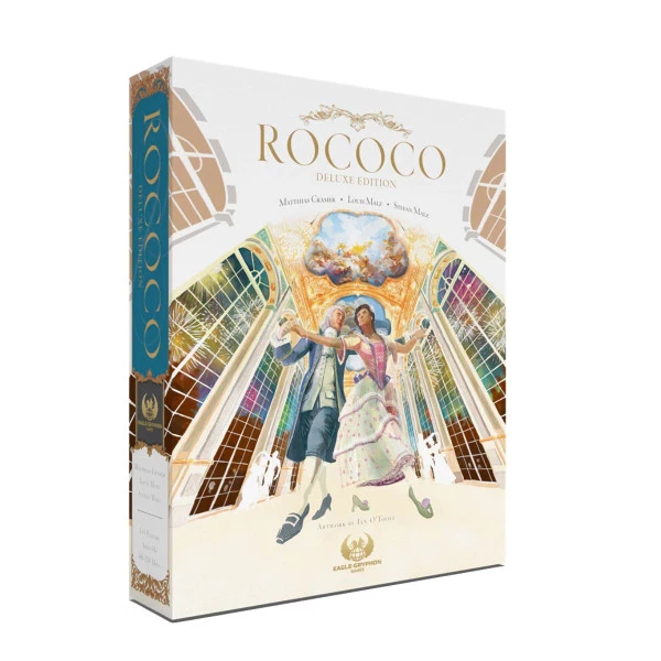 Nessa nova versão, Rococo: Deluxe Edition, além de ganhar nova arte, agora assinada por Ian O´Toole, o jogo também vem com expansões integradas, cartas ?promo?, tokens remodelados e um novo e ainda mais luxuoso acabamento.